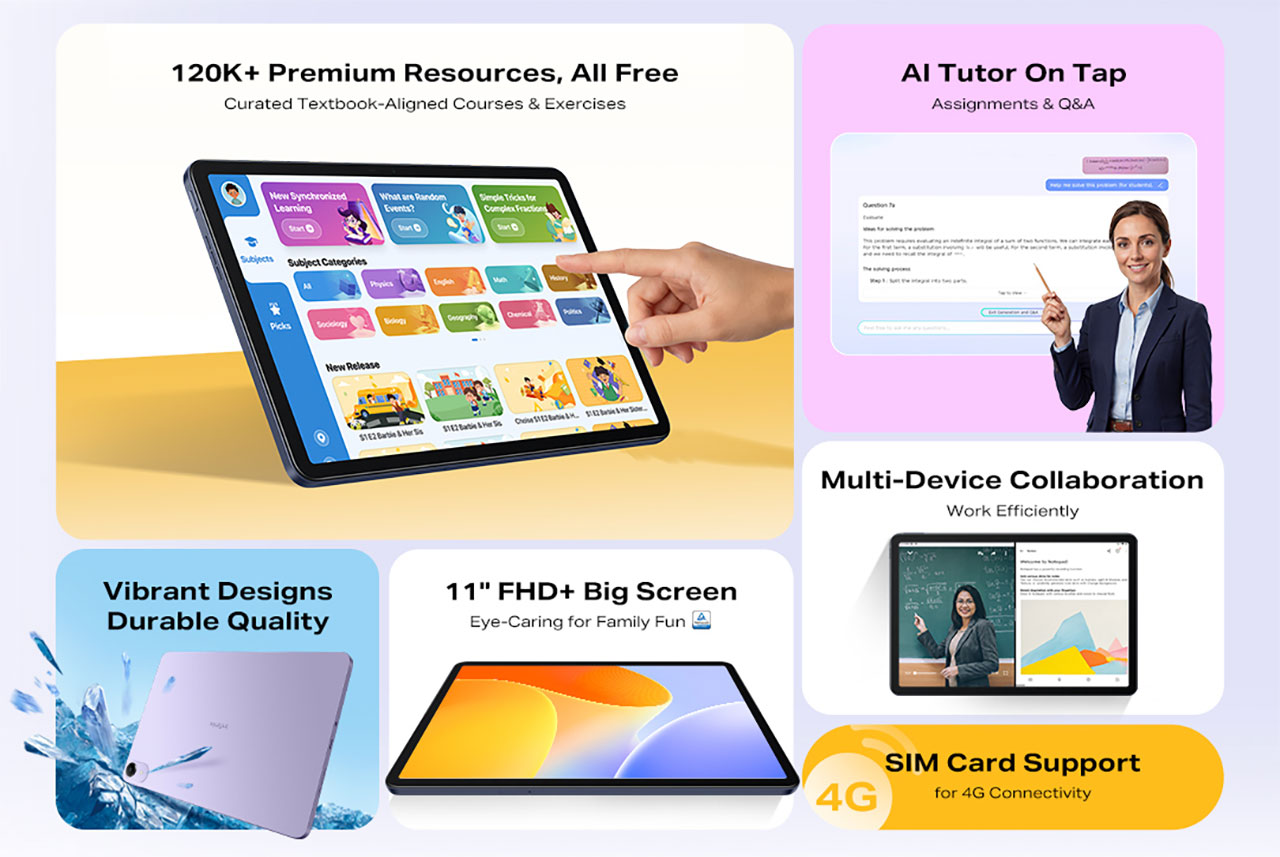 اصلی‌ترین نقطه قوت تبلت اینفینیکس ایکس پد 30E، مجموعه ابزارهای آموزشی مبتنی بر هوش مصنوعی آن است. این دستگاه به بیش از 120,000 منبع آموزشی رایگان، شامل دوره‌های درسی هماهنگ با کتاب‌های رسمی و تمرین‌های متنوع دسترسی دارد.