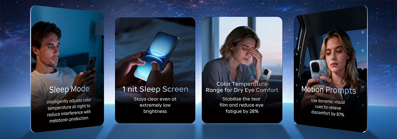 نمایشگر این گوشی از نوع AMOLED با طراحی حفرهدار است که رزولوشن خیره کننده 1.5K را ارائه میدهد. این صفحه نمایش با نرخ نوسازی 144 هرتز که به معنای سرعت بالای بازسازی تصویر در هر ثانیه است، تجربهای بسیار روان را برای کاربران، به ویژه گیمرها، فراهم میکند. یکی از نقاط قوت این نمایشگر، روشنایی نقطهای فوقالعاده 5000 نیت است که خوانایی صفحه را حتی در زیر مستقیمترین تابش نور خورشید تضمین میکند؛ در حالی که حداقل روشنایی آن برای استفاده در محیطهای کاملاً تاریک تا 1 نیت کاهش مییابد. این پنل همچنین از استاندارد +HDR10 پشتیبانی کرده و به یک اسکنر اثر انگشت 3 بعدی اولتراسونیک مجهز شده است. این فناوری برخلاف حسگرهای نوری، با استفاده از امواج صوتی، تصویری سهبعدی از خطوط انگشت ثبت میکند که امنیت و سرعت بسیار بالاتری حتی با دستان خیس دارد.