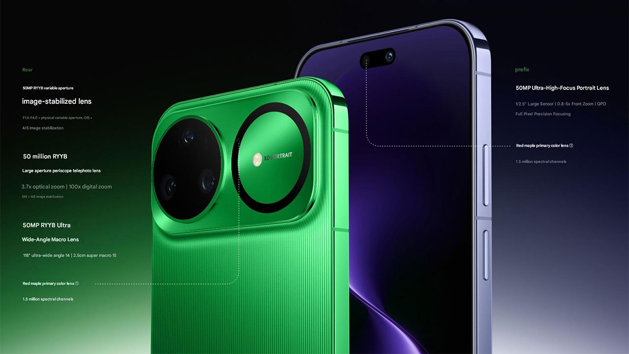 در کنار لنز اصلی، یک لنز تله‌فوتو پریسکوپی با زوم اپتیکال 3.7 برابر قرار گرفته که امکان بزرگنمایی باکیفیت و بدون افت جزئیات را فراهم می‌کند. سومین لنز نیز یک اولتراواید (فوق عریض) با میدان دید 118 درجه‌ای است که برای عکاسی از مناظر گسترده و بناهای عظیم ایده‌آل است. استفاده از سنسورهای RYYB به جای RGGB سنتی (قرمز، سبز، سبز، آبی) به معنای جایگزینی پیکسل‌های سبز با زرد است. از آنجایی که پیکسل‌های زرد می‌توانند طیف گسترده‌تری از نور (شامل نور سبز و قرمز) را جذب کنند، این سنسورها تا 40 درصد نور بیشتری دریافت می‌کنند و عملکرد دوربین در شرایط نوری ضعیف را به شکل چشمگیری بهبود می‌بخشند.