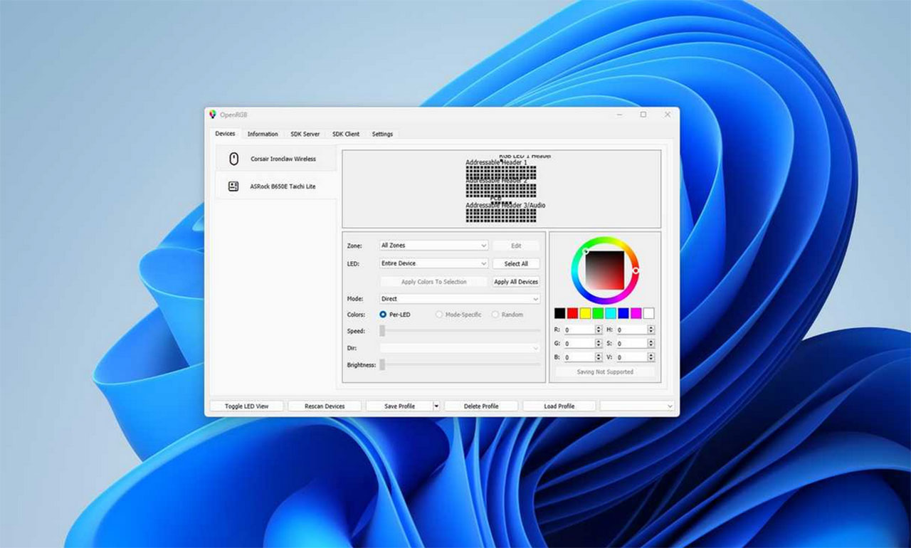 سیستم‌های مدیریتی شخص ثالث، مانند OpenRGB یا SignalRGB، به شما امکان می‌دهند نورپردازی RGB خود را با یک رابط نرم افزاری ساده کنترل کنید و می‌توانند با تحمیل بار نسبتاً کم بر سیستم، بدون نگرانی در مورد تداخل، مدیریت RGB را انجام دهند.