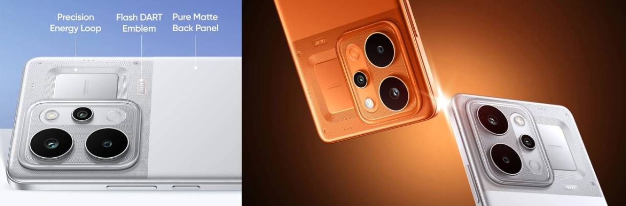 در پنل پشتی، یک دوربین اصلی 50 مگاپیکسلی با سنسور سونی IMX882، گشودگی دیافراگم f/1.8 و لرزشگیر اپتیکال تصویر (OIS) قرار دارد. این دوربین قادر به ضبط ویدیوی 4K با سرعت 30 فریم بر ثانیه است و از حالت Night Portrait Bokeh برای ثبت پرتره‌های زیبا در نور کم پشتیبانی می‌کند. یک دوربین 8 مگاپیکسلی فوق عریض با زاویه دید 112 درجه و یک دوربین سلفی 16 مگاپیکسلی نیز این مجموعه را تکمیل می‌کنند.