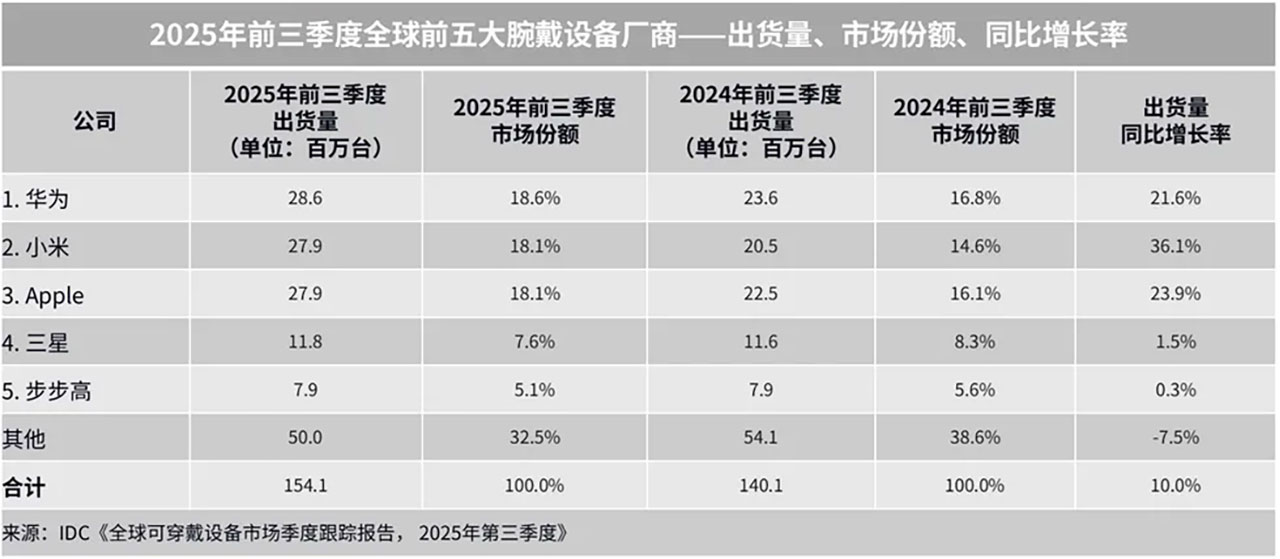 در جایگاه دوم این ردهبندی، شیائومی قرار دارد که به عنوان سریعترین تولید کننده در حال رشد در میان 5 شرکت برتر شناخته میشود. این شرکت با عرضه 27.9 میلیون دستگاه، رشدی خیره کننده را تجربه کرد. تقاضای بالا برای مدلهای اقتصادی مانند Xiaomi Smart Band 10 و ساعتهای هوشمند متنوع سری ردمی، عامل اصلی این موفقیت بوده است. شیائومی علاوه بر عملکرد قدرتمند در چین، حضور پررنگی در بازارهای جنوب شرقی آسیا و آمریکای جنوبی نیز داشته و استراتژی عرضه محصولات با ارزش خرید بالا را با موفقیت پیادهسازی کرده است.