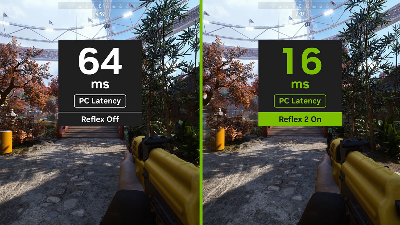 البته انویدیا از این مشکل آگاه است. به همین دلیل، کارتهای گرافیک این شرکت از فناوری «انویدیا رفلکس» (Nvidia Reflex) بهره میبرند. وظیفه رفلکس این است که زمانی که Frame Generation فعال است، تأخیر کلی سیستم را به حداقل برساند.